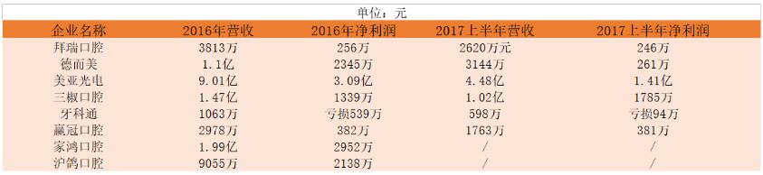 已上市口腔企業(非器械類)盈利情況
