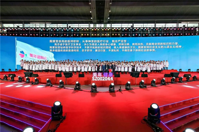 “我接受崇高的醫師職稱,從事神圣的醫療行業,我莊嚴宣誓:我忠誠于醫療衛生事業,決心為增進人類的身心健康、防病治病、救死扶傷、貢獻我全部的知識和力量……我宣誓:守護每個中國人的生命質量,終生恪守誓詞!”陣陣堅毅的聲音回蕩在會場上空。